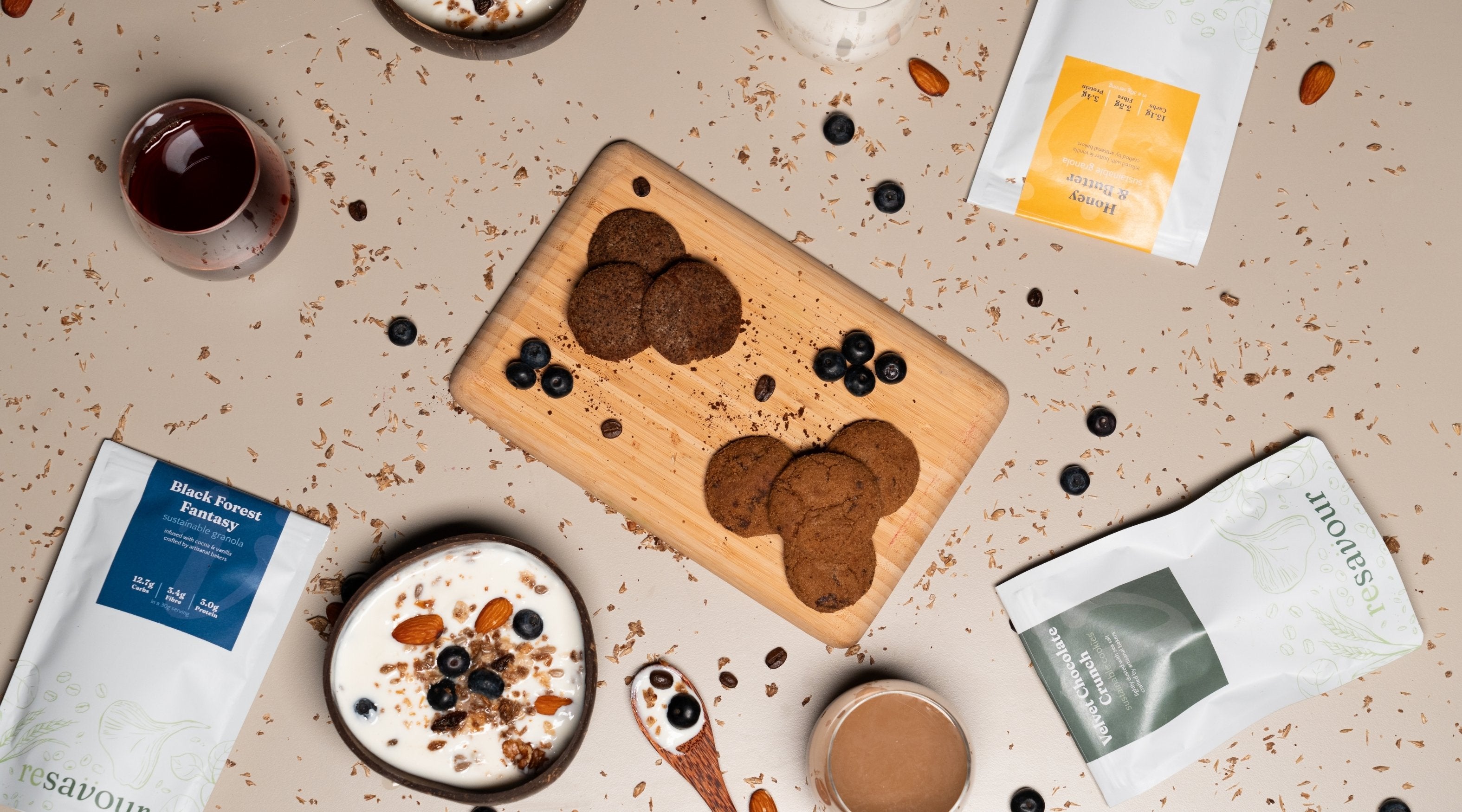 At resavour, every product is crafted with care for your health and the planet. We believe that great taste shouldn't come at the expense of sustainability, which is why our treats are made with upcycled ingredients like spent coffee grounds and grains. Every bite you take supports a circular food system, reducing waste and creating delicious, nutritious snacks for everyone.